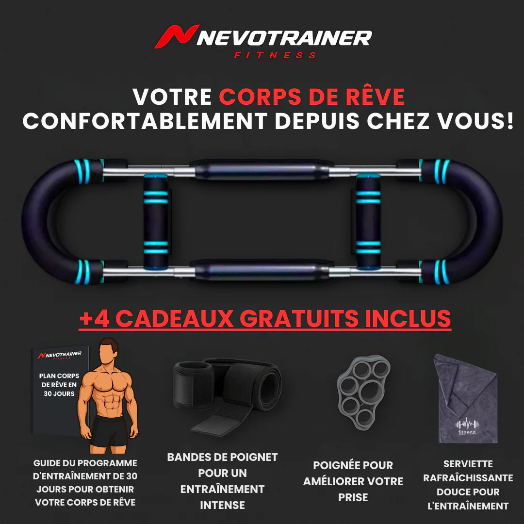 Que vous cherchiez à gagner en force, à tonifier votre corps ou simplement à rester en forme depuis chez vous, Nevotrainer™ est votre solution tout-en-un pour une transformation complète du corps.